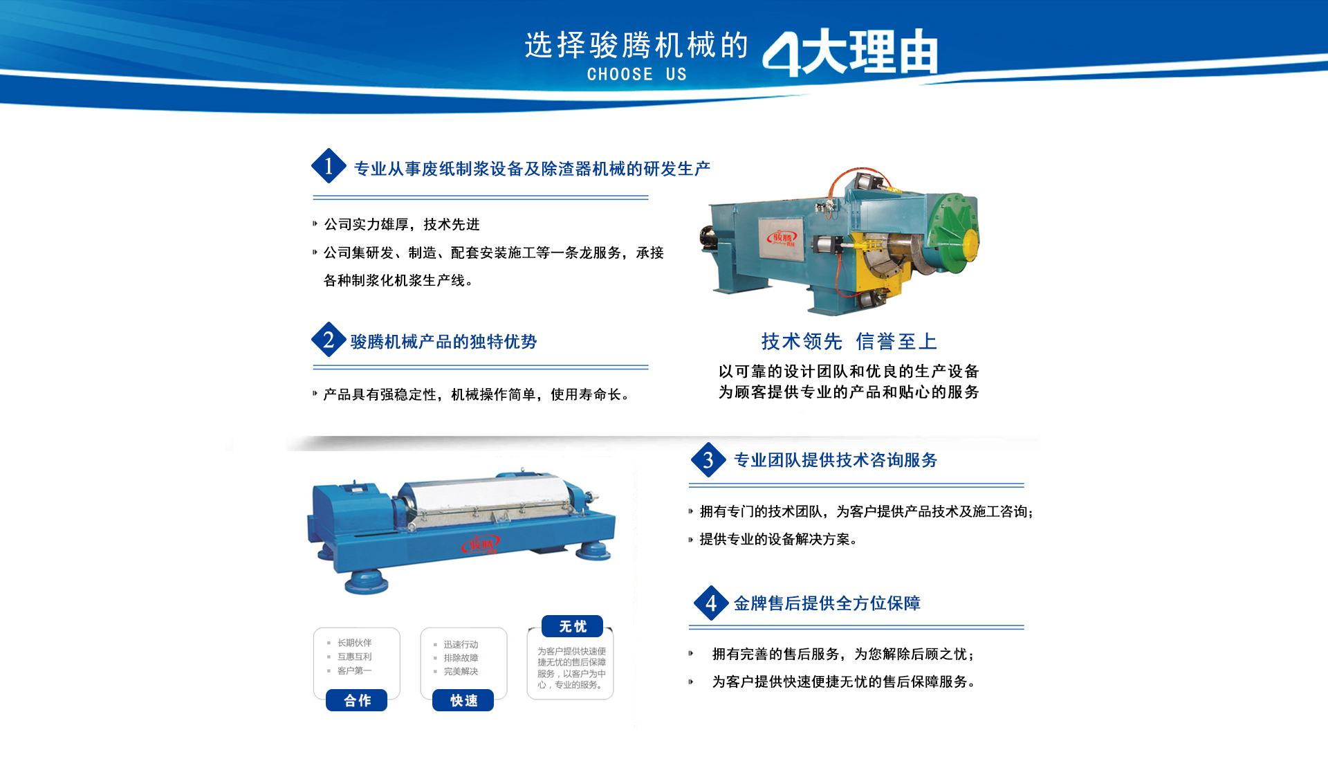 安丘市駿騰機械制造有限公司位于中國風箏之都濰坊南35公里,座落在青云湖畔,是具有活力的安丘市興安街道工業園。 依托風箏之都完善的工業基礎和發(fā)達的機械制造業,公司致力于廢紙制漿設備及除渣器機械的研究與制造。 公司始終堅持以市場需求為先導,客戶利益為目標,嚴格執(zhí)行國家技術及行業標準,保證產品品質,提供專業服務,用專業的產品與真誠的客戶實現共同發(fā)展,是我們終生奮斗的目標。讓我們攜手共進,創(chuàng)造美好明天。 我們熱情期待著您的光臨指導,洽談業務! 查看更多>>